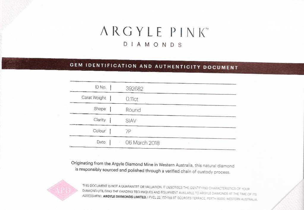 Certifikáty ARGYLE jsou unikátní tím, že potvrzují velmi ceněný australský původ růžových diamantů z věhlasného dolu Argyle. Certifikát vystavuje přímo diamantový důl a všechny diamanty jsou opatřeny jedinečným laserovým číslem na rundistě diamantu. Tyto certifikáty nabízejí velmi propracovaný systém hodnocení sytosti a odstínu barvy. Diamanty certifikované společností po roce 2008 lze verifikovat online.