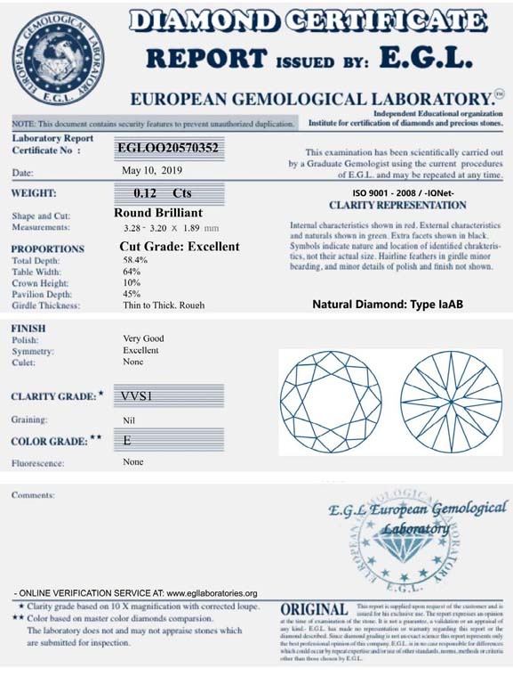 Diamant 0.12ct E/VVS1 s EGL certifikátem