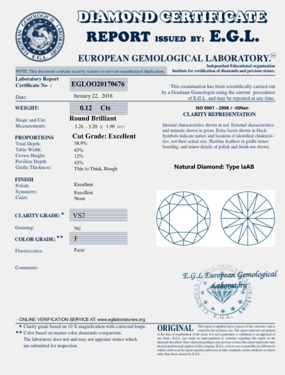 Diamant 0.12ct F/VS2 s EGL certifikátem
