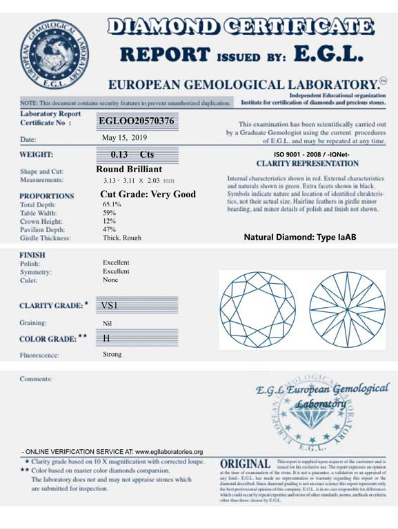 Diamant 0.13ct H/VS1 s EGL certifikátem