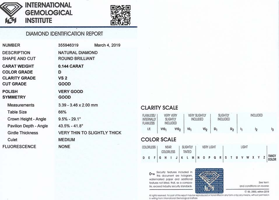 Diamant 0.144ct D/VS2 s IGI certifikátem