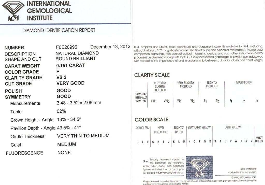 Diamant 0.151ct F/VS2 s IGI certifikátem
