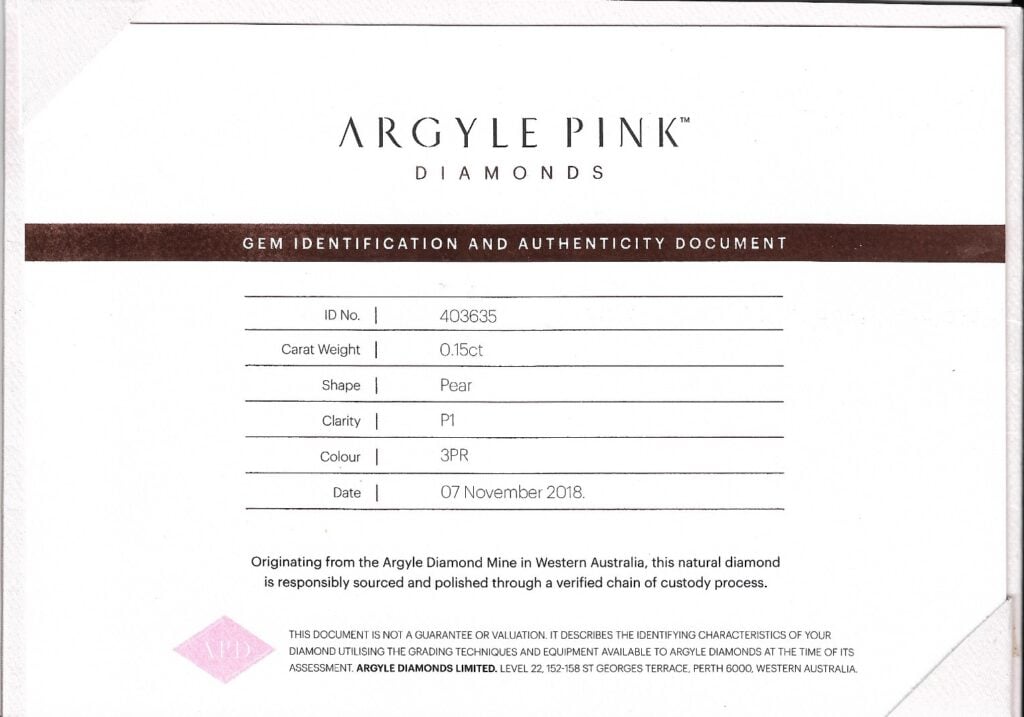 Certifikát ARGYLE je vystaven přímo diamantovým dolem v Austrálii, kde byl diamant vytěžen. Diamant je laserově číslován na své rundistě dolem ARGYLE.