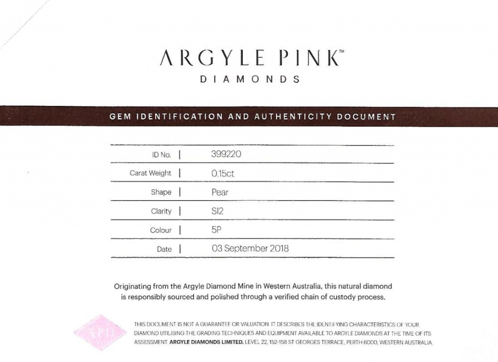 Certifikát ARGYLE je vystaven přímo diamantovým dolem v Austrálii, kde byl diamant vytěžen. Diamant je laserově číslován na své rundistě dolem ARGYLE.
