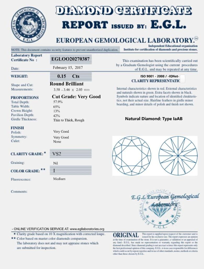 Diamant 0.15ct I/VS2 s EGL certifikátem