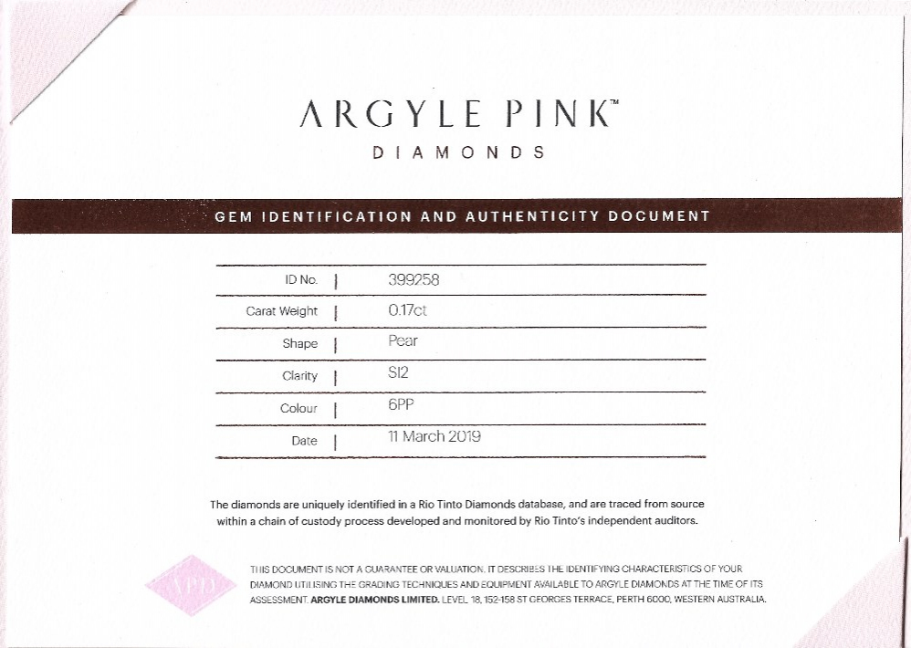 Certifikát ARGYLE je vystaven přímo diamantovým dolem v Austrálii, kde byl diamant vytěžen. Diamant je laserově číslován na své rundistě dolem ARGYLE.