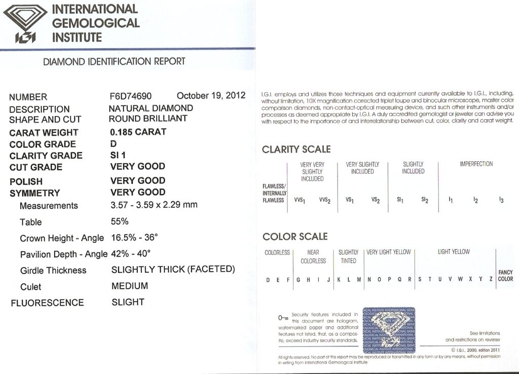 Diamant 0.185ct D/SI1 s IGI certifikátem