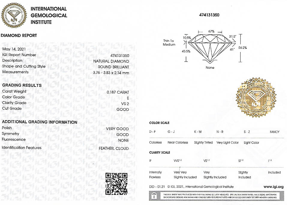 Diamant je včetně certifikátu IGI a je zataven do plastové kartičky IGI.