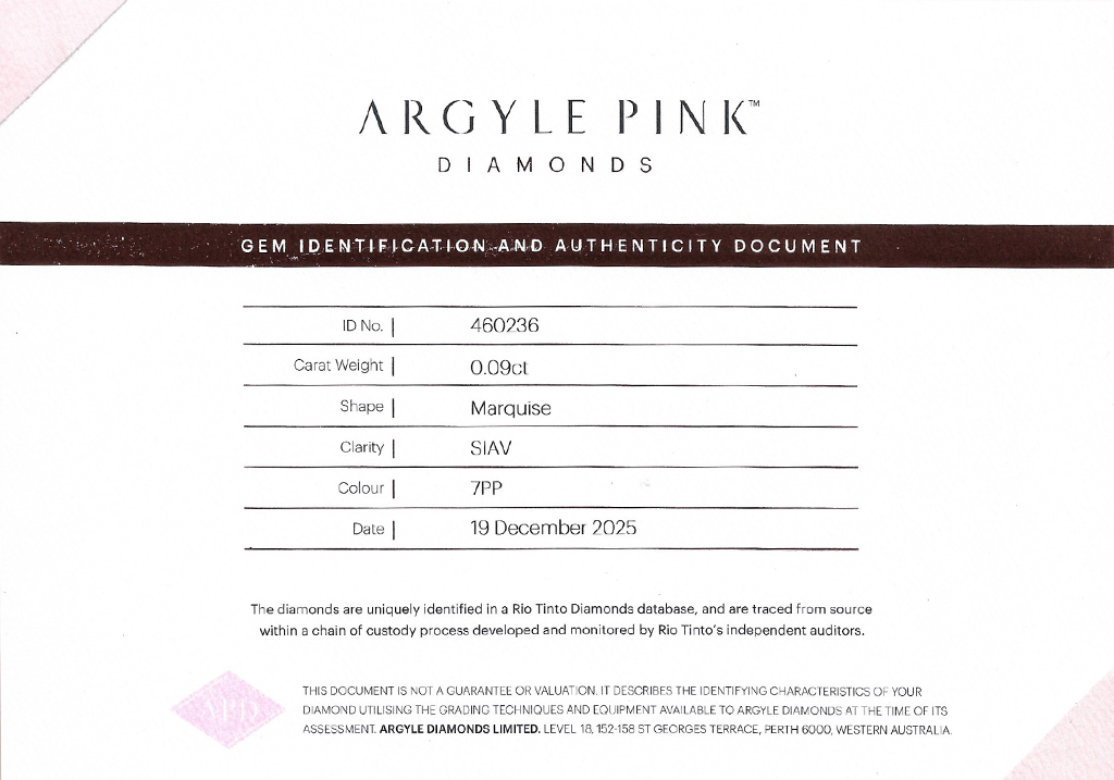 Certifikáty ARGYLE jsou unikátní tím, že potvrzují velmi ceněný australský původ růžových diamantů z věhlasného dolu Argyle. Certifikát vystavuje přímo diamantový důl a všechny diamanty jsou opatřeny jedinečným laserovým číslem na rundistě diamantu. Tyto certifikáty nabízejí velmi propracovaný systém hodnocení sytosti a odstínu barvy. Diamanty certifikované společností po roce 2008 lze verifikovat online.