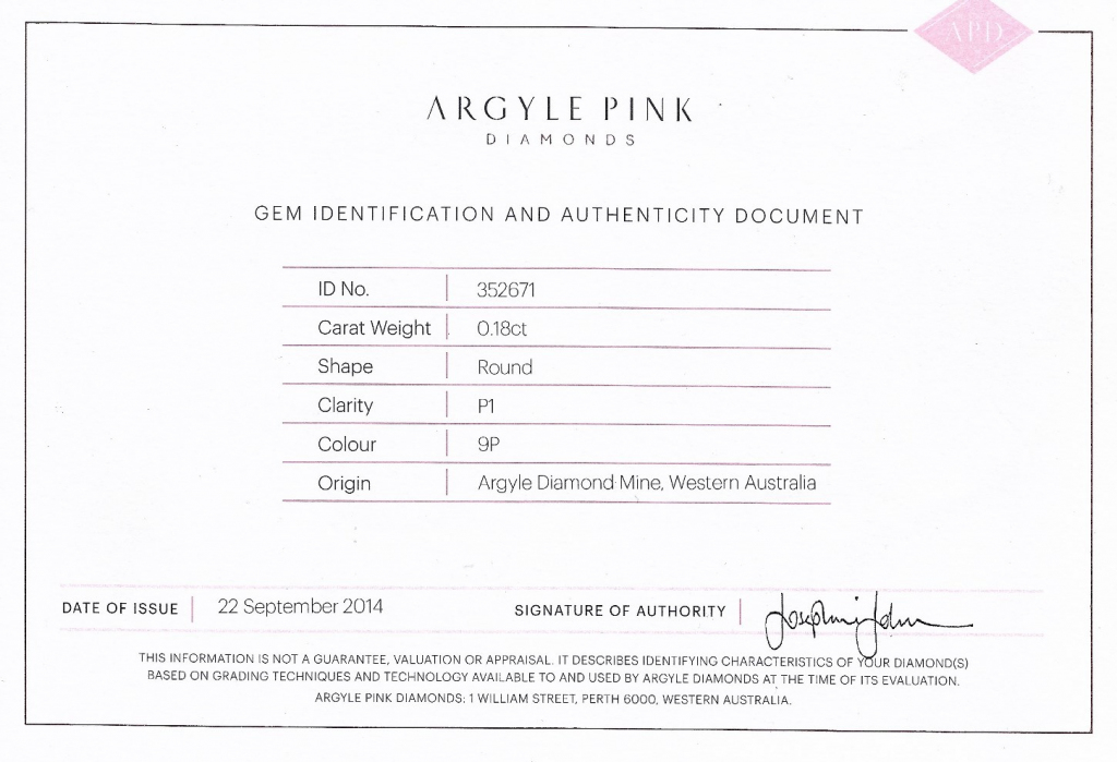 Certifikáty ARGYLE jsou unikátní tím, že potvrzují velmi ceněný australský původ růžových diamantů z věhlasného dolu Argyle. Certifikát vystavuje přímo diamantový důl a všechny diamanty jsou opatřeny jedinečným laserovým číslem na rundistě diamantu. Tyto certifikáty nabízejí velmi propracovaný systém hodnocení sytosti a odstínu barvy. Diamanty certifikované společností po roce 2008 lze verifikovat online.