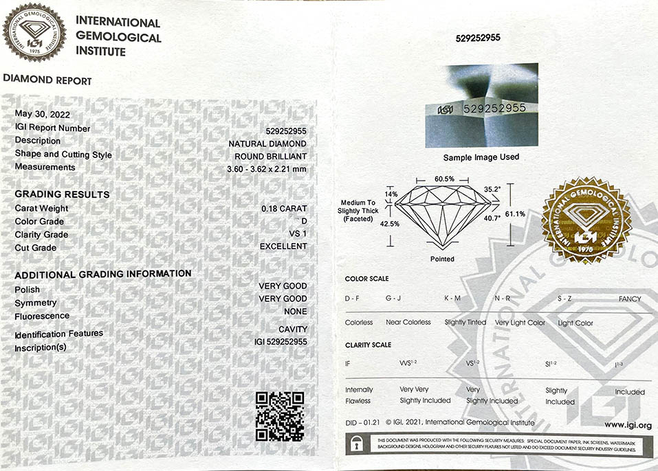 Diamant 0.18ct D/VS1 s IGI certifikátem