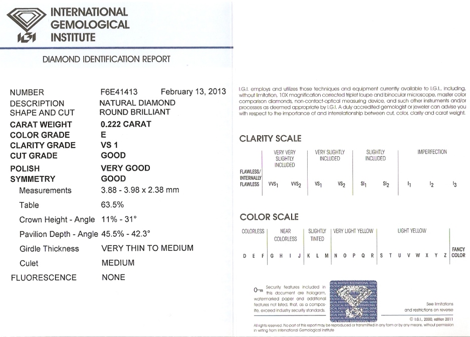 Diamant 0.222ct E/VS1 s IGI certifikátem