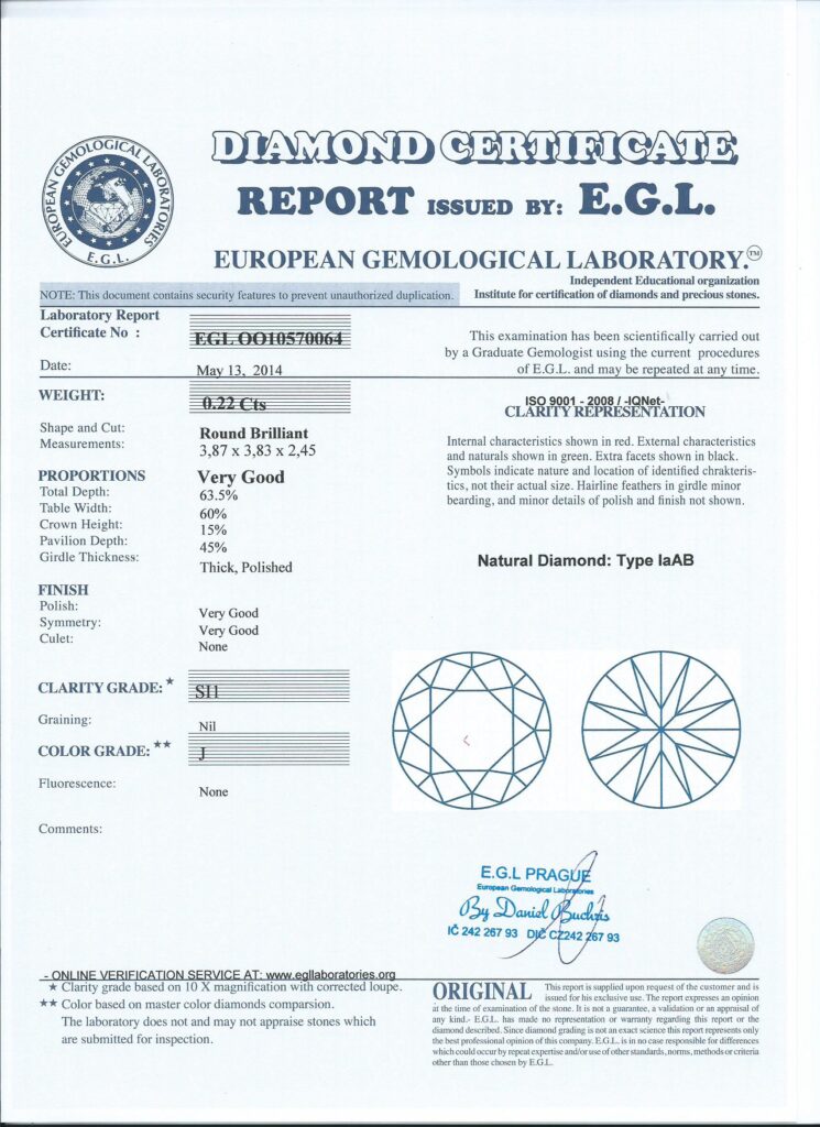 Diamant 0.22ct J/SI1 s EGL certifikátem