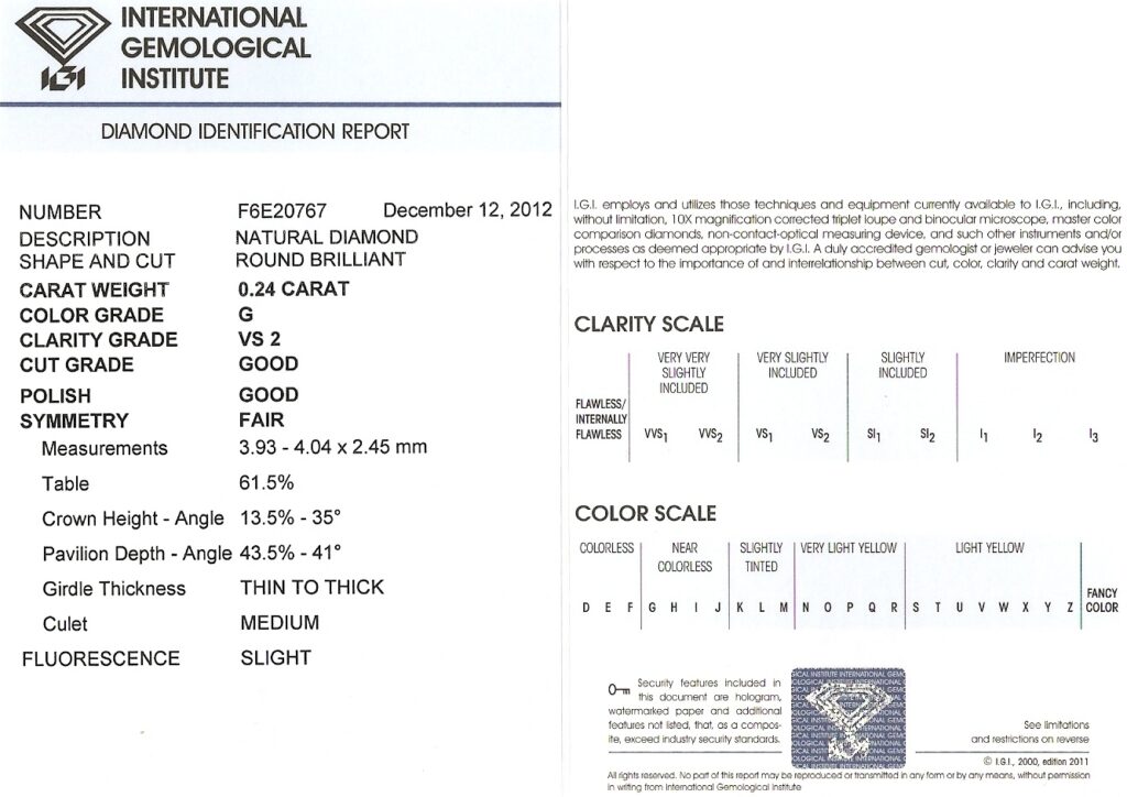 Diamant 0.24ct G/VS2 s IGI certifikátem