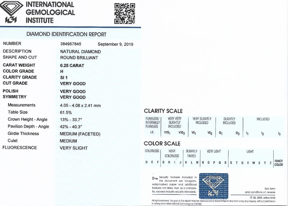 Diamant 0.25ct H/SI1 s IGI certifikátem
