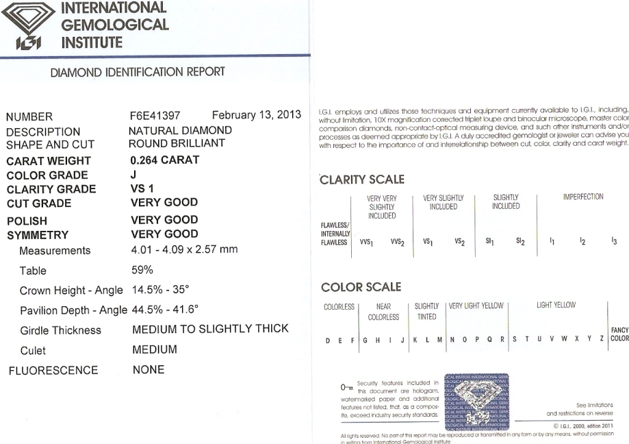 Diamant 0.264ct J/VS1 s IGI certifikátem