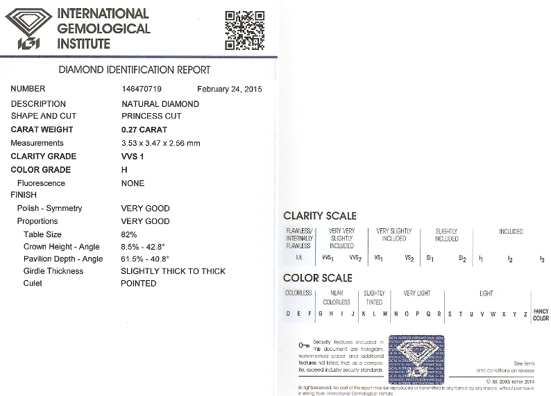 Diamant je včetně certifikátu IGI a je zataven do plastové kartičky IGI.