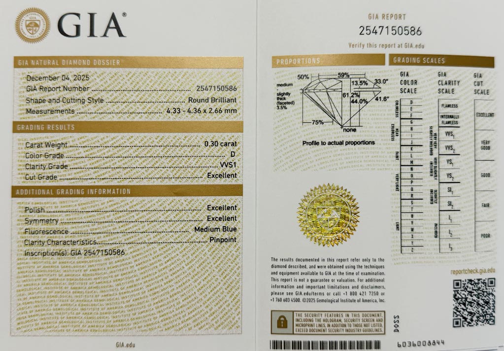Diamant 0.30ct D/VVS1 s GIA certifikátem