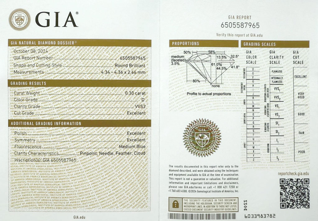Diamant je včetně certifikátu GIA a je laserově číslován na své rundistě laboratoří GIA.