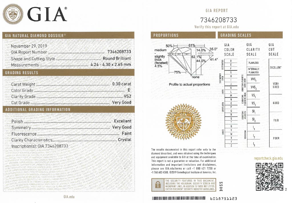 byl založen v roce 1931 a patří k absolutní špičce mezi gemologickými laboratořemi po celém světě a dodržuje pravidla stanovená Diamond High Council v plném rozsahu. Všechny diamanty na stránkách VVDiamonds opatřeny certifikátem GIA, lze verifikovat na stránkách GIA. Většina diamantů je laserově číslována pro větší bezpečnost obchodu.