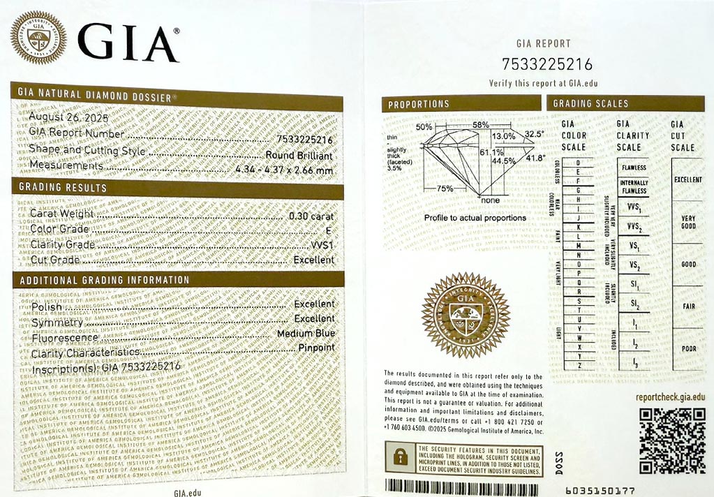 Diamant 0.30ct E/VVS1 s GIA certifikátem