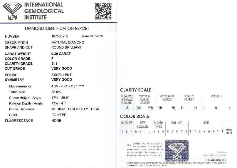 Diamant 0.30ct F/SI1 s IGI certifikátem