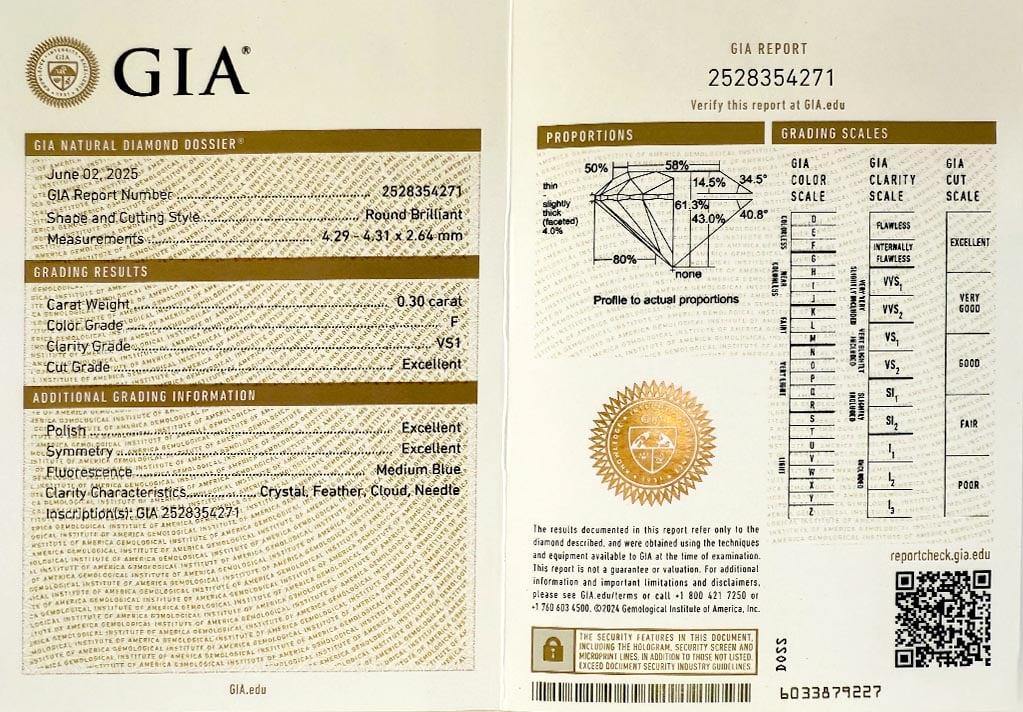 byl založen v roce 1931 a patří k absolutní špičce mezi gemologickými laboratořemi po celém světě a dodržuje pravidla stanovená Diamond High Council v plném rozsahu. Všechny diamanty na stránkách VVDiamonds opatřeny certifikátem GIA, lze verifikovat na stránkách GIA. Většina diamantů je laserově číslována pro větší bezpečnost obchodu.