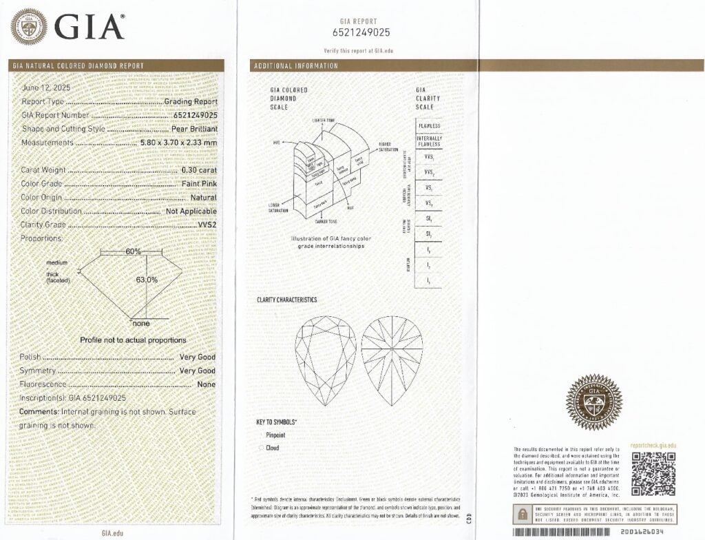 Růžový diamant 0.30ct Faint Pink/VVS2 s GIA certifikátem