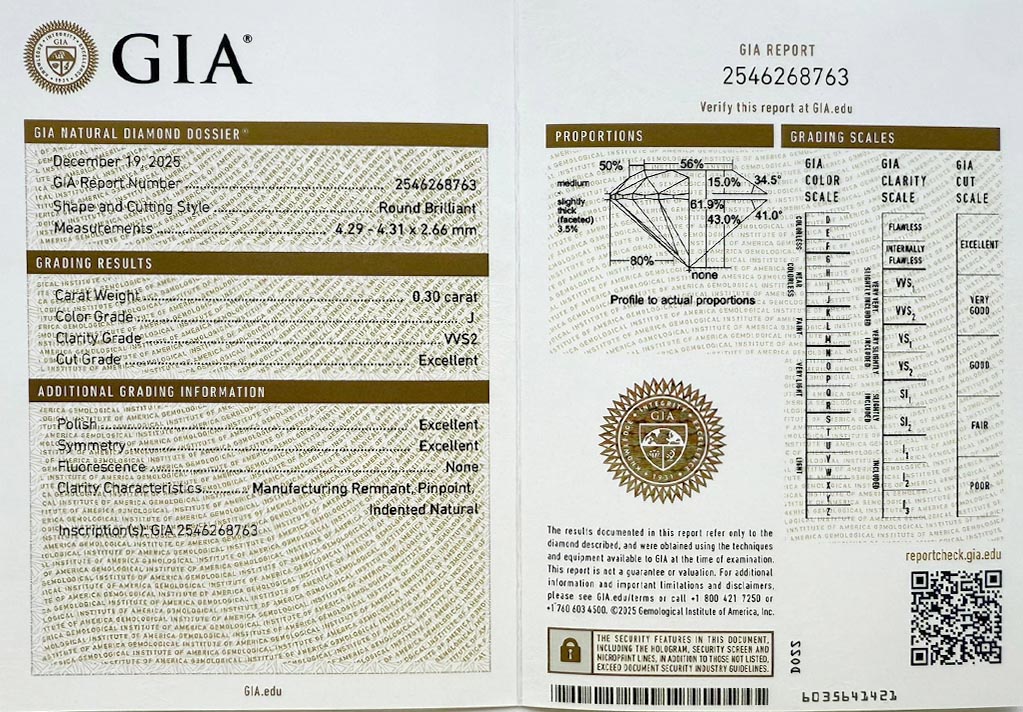 Diamant 0.30ct J/VVS2 s GIA certifikátem