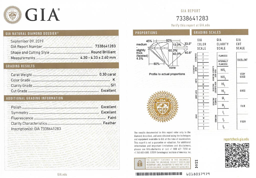 Diamant 0.30ct K/SI1 s GIA certifikátem