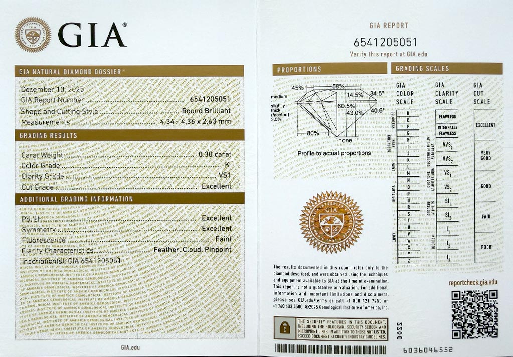 Diamant 0.30ct K/VS1 s GIA certifikátem