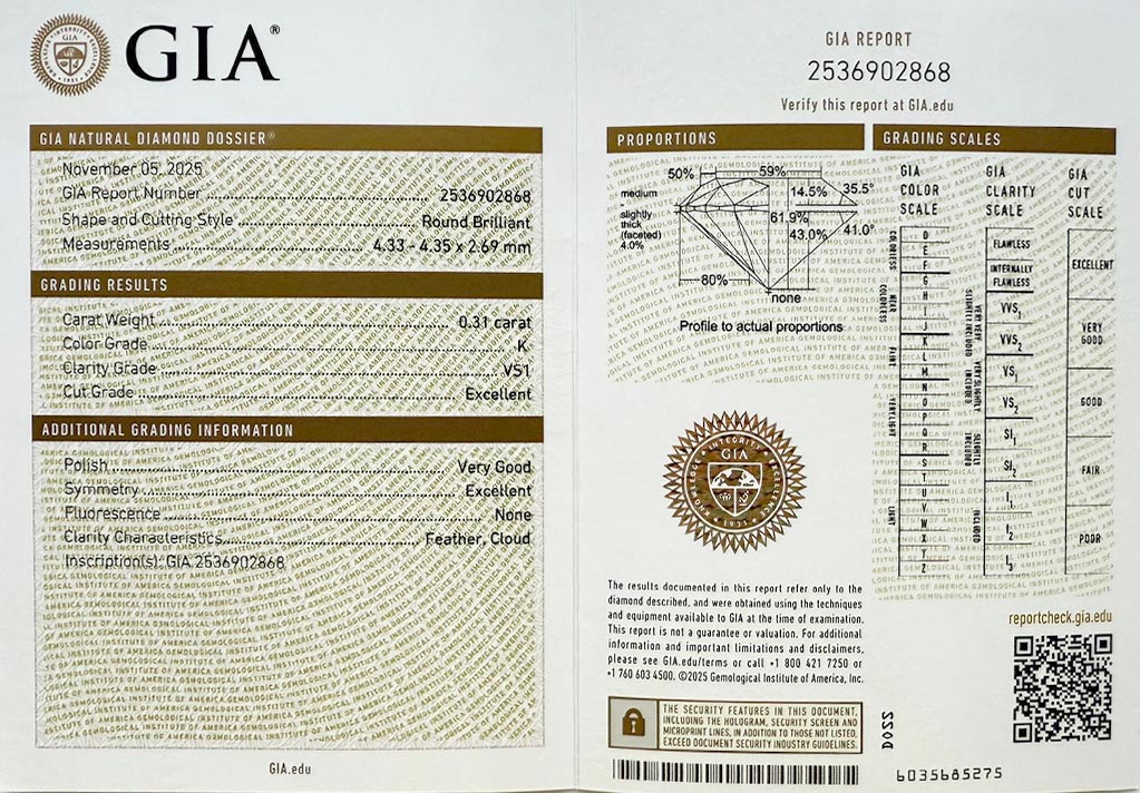 Diamant 0.31ct K/VS1 s GIA certifikátem