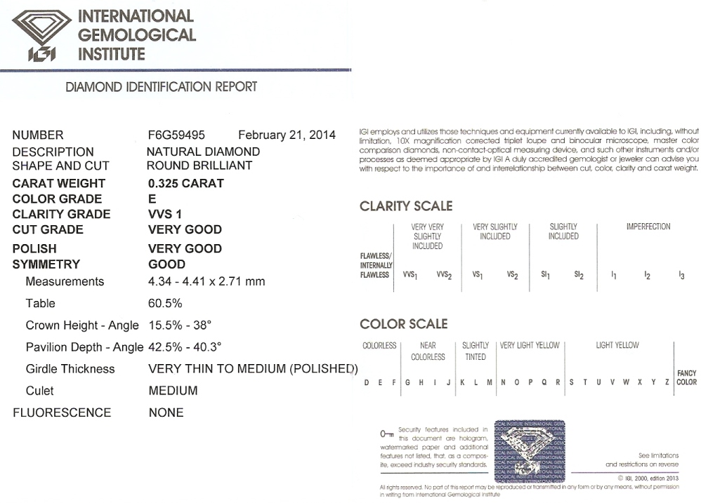 Diamant 0.325ct E/VVS1 s IGI certifikátem