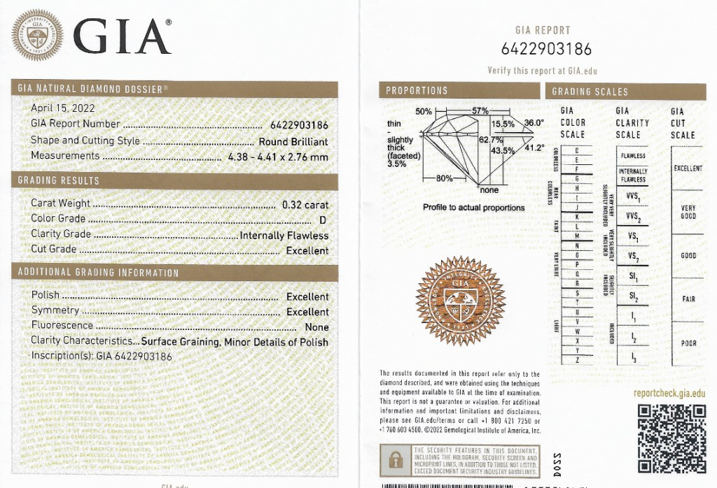 Diamant je včetně certifikátu GIA a je laserově číslován na své rundistě laboratoří GIA.