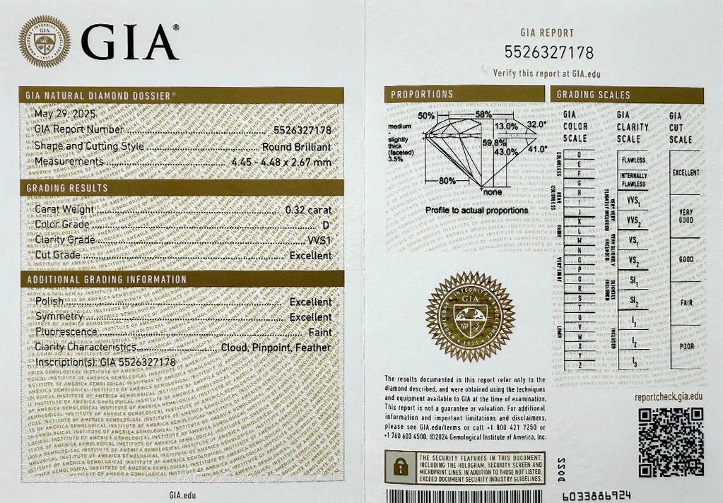 byl založen v roce 1931 a patří k absolutní špičce mezi gemologickými laboratořemi po celém světě a dodržuje pravidla stanovená Diamond High Council v plném rozsahu. Všechny diamanty na stránkách VVDiamonds opatřeny certifikátem GIA, lze verifikovat na stránkách GIA. Většina diamantů je laserově číslována pro větší bezpečnost obchodu.