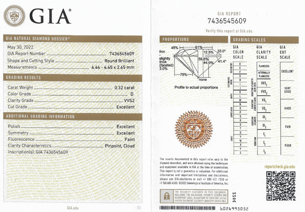 Diamant 0.32ct D/VVS2 s GIA certifikátem