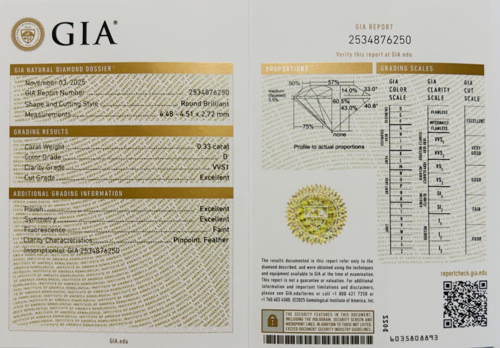 Diamant 0.33ct D/VVS1 s GIA certifikátem