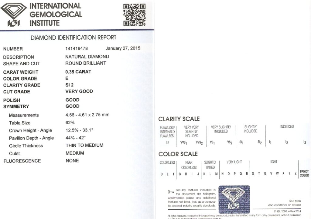 Diamant je včetně certifikátu IGI a je zataven do plastové kartičky IGI.