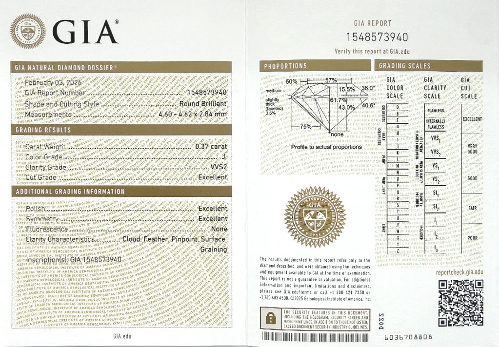 Diamant je včetně certifikátu GIA a je laserově číslován na své rundistě laboratoří GIA.