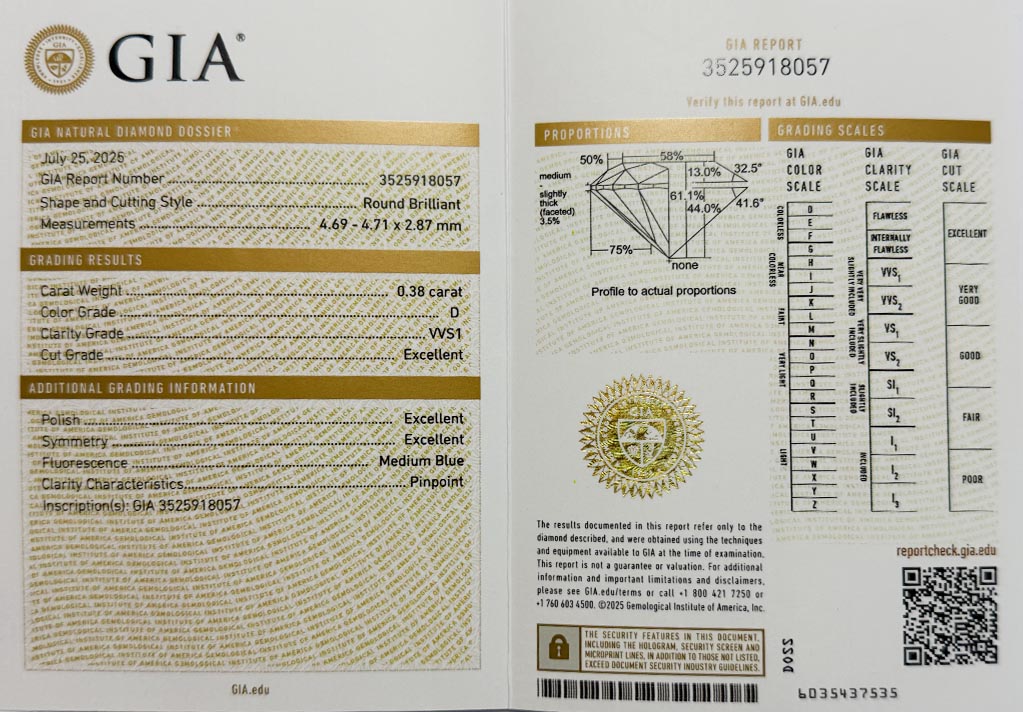 Diamant 0.38ct D/VVS1 s GIA certifikátem