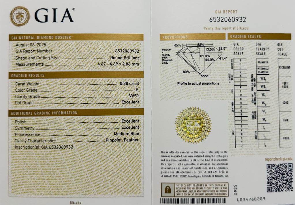 Diamant 0.38ct E/VVS1 s GIA certifikátem