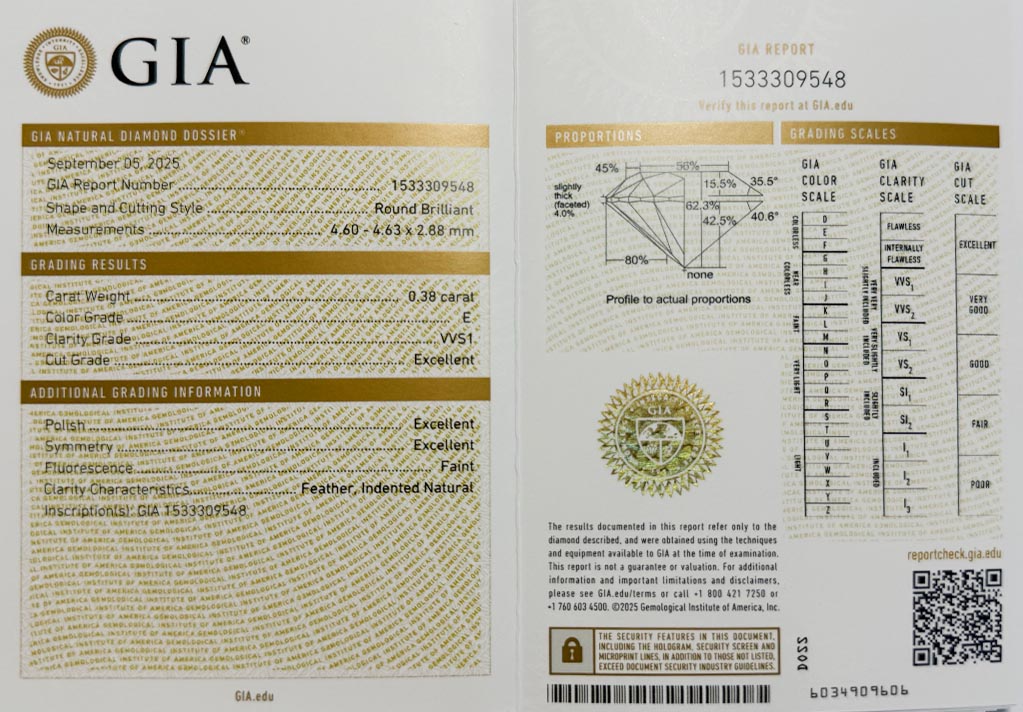 Diamant 0.38ct E/VVS1 s GIA certifikátem