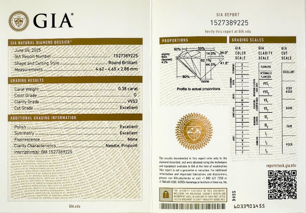 Diamant je včetně certifikátu GIA a je laserově číslován na své rundistě laboratoří GIA.