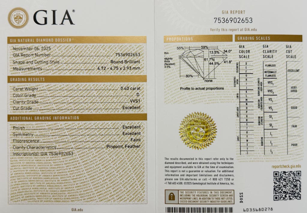 Diamant 0.40ct D/VVS1 s GIA certifikátem