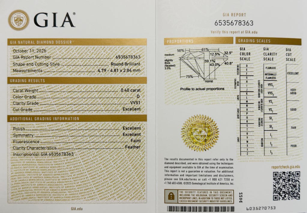 Diamant 0.40ct D/VVS1 s GIA certifikátem