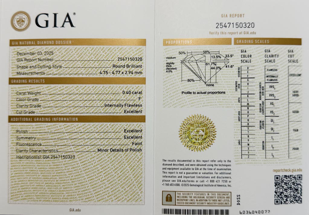 Diamant 0.40ct F/IF s GIA certifikátem
