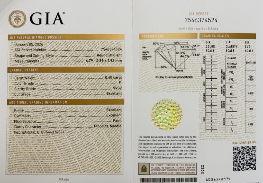 Diamant 0.40ct F/VVS2 s GIA certifikátem
