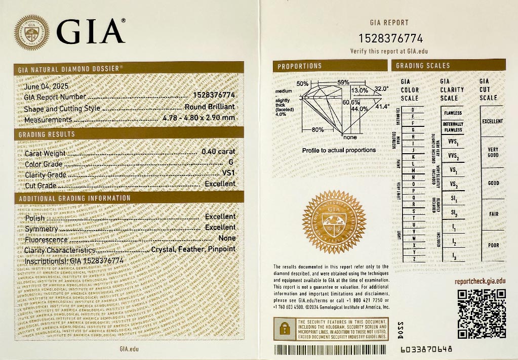 Diamant 0.40ct G/VS1 s GIA certifikátem