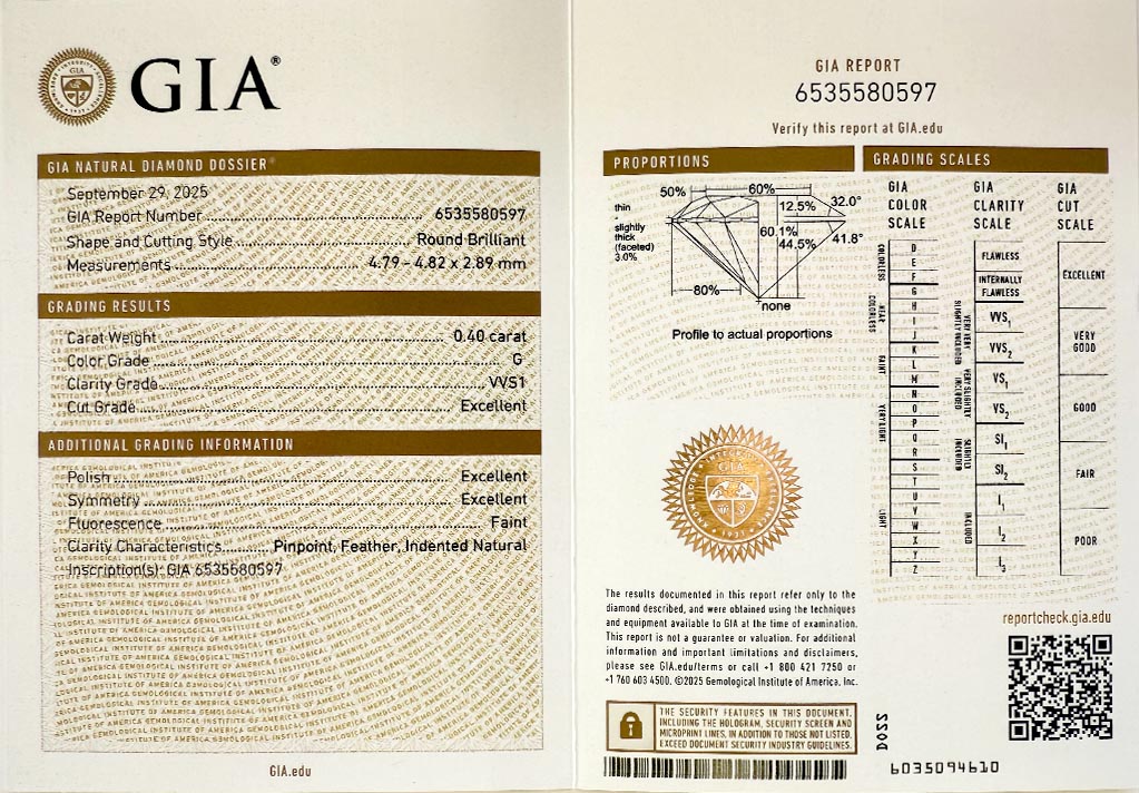 Diamant 0.40ct G/VVS1 s GIA certifikátem