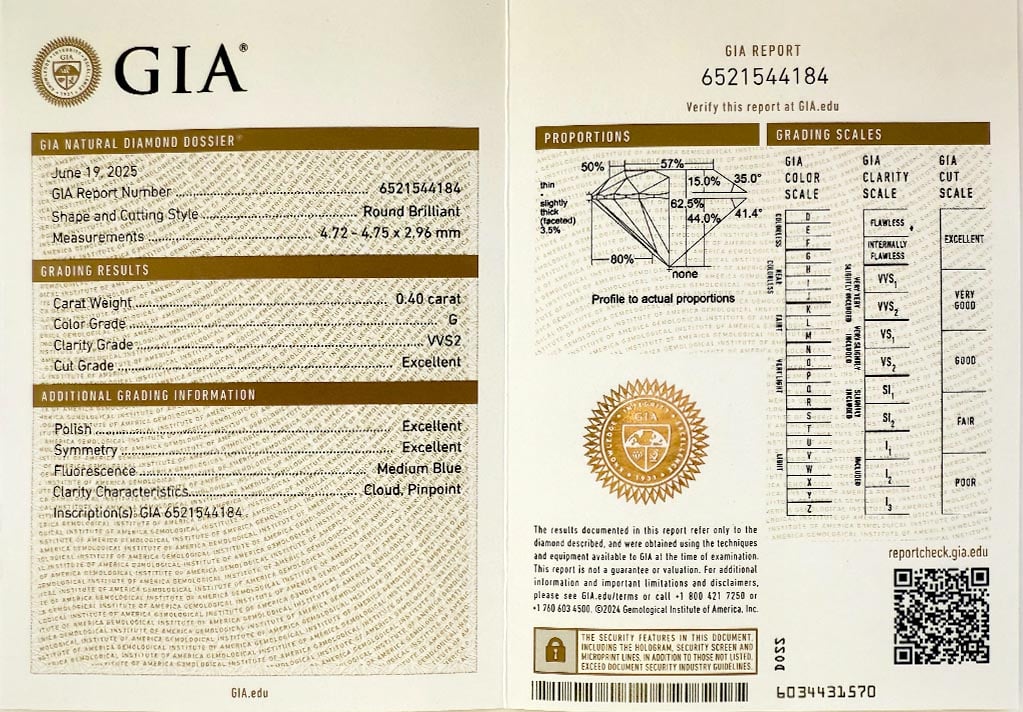 Diamant 0.40ct G/VVS2 s GIA certifikátem